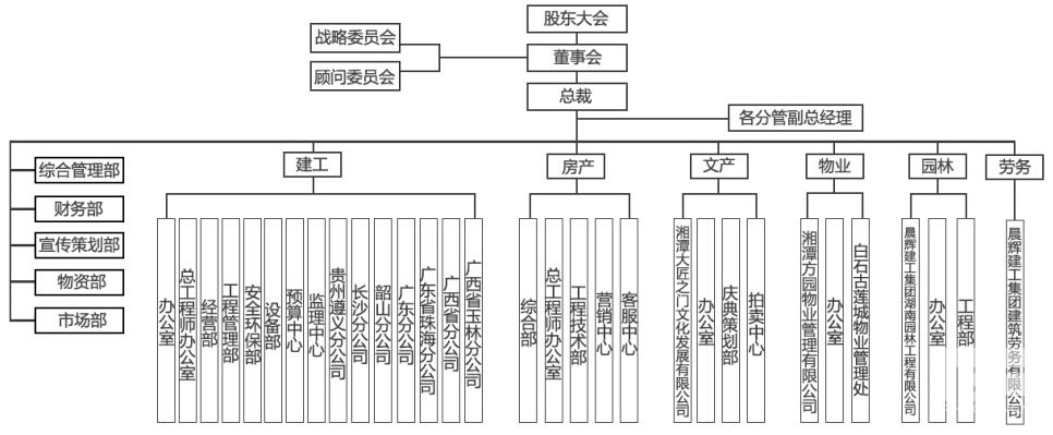晨輝集團(tuán)實(shí)行董事會(huì)領(lǐng)導(dǎo)下的總經(jīng)理負(fù)責(zé)制,董事會(huì)為集團(tuán)發(fā)展戰(zhàn)略、發(fā)展目標(biāo)決策機(jī)構(gòu),總經(jīng)理室為集團(tuán)經(jīng)營(yíng)管理執(zhí)行機(jī)構(gòu)。